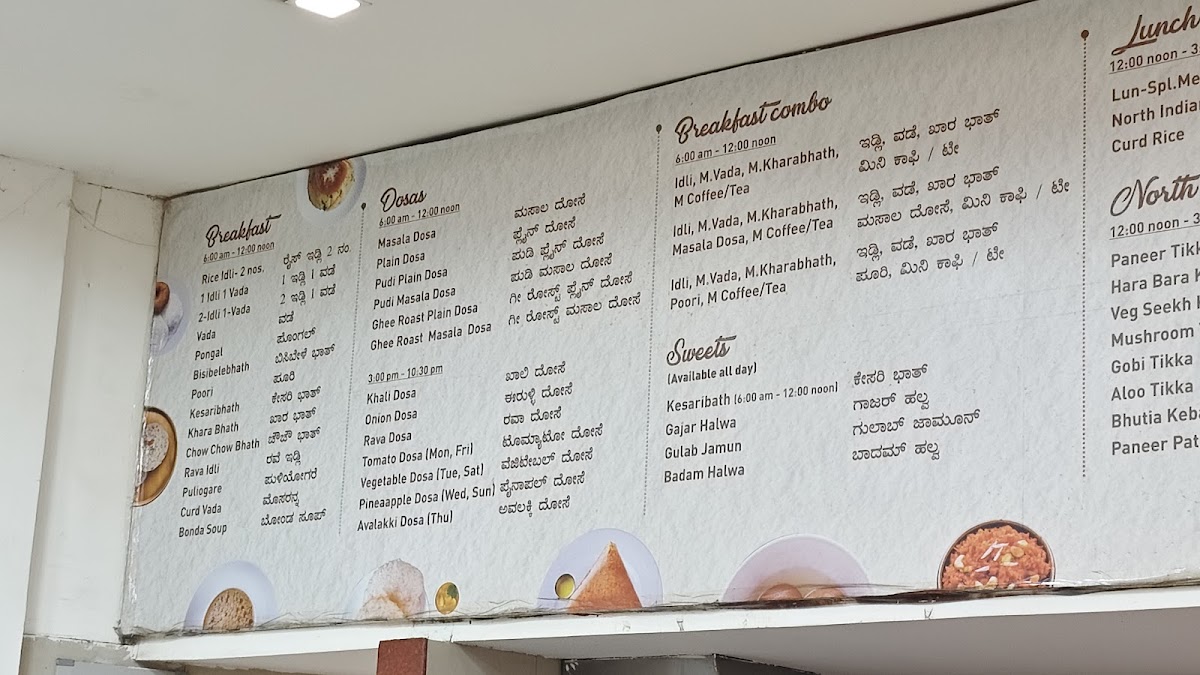 Visitors typically enjoy dishes like the classic Masala Dosa, soft Idli Vada, and aromatic Filter Coffee to start their day, embracing the gentle rhythm of a simple, satisfying breakfast. Alongside these, you’ll find wholesome rice-based plates such as Bisibelebath and Curd Rice that blend seamlessly with the warm, inviting atmosphere typical of a family-friendly setting.