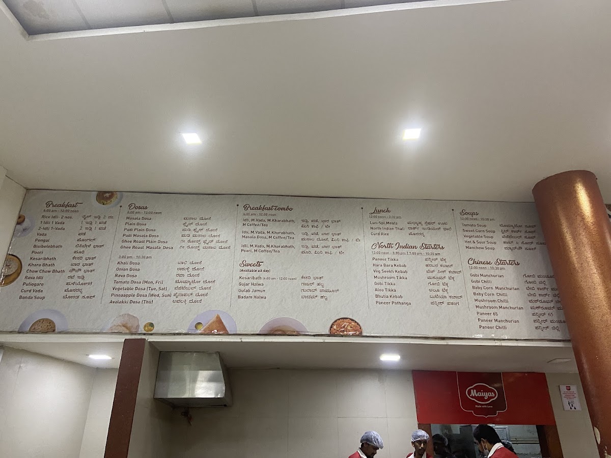 The menu at Maiyas Restaurants Pvt. Ltd. Highway Star offers a comforting blend of traditional South Indian breakfast classics alongside some casual lunch and snack options. It’s a thoughtful collection designed to suit a relaxed family outing or an early morning break with familiar, hearty flavors.
